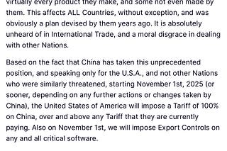 Equities saw their largest selloff since April after Trump announced an increase of tariffs on China to 100% in retaliation for rare earth export…