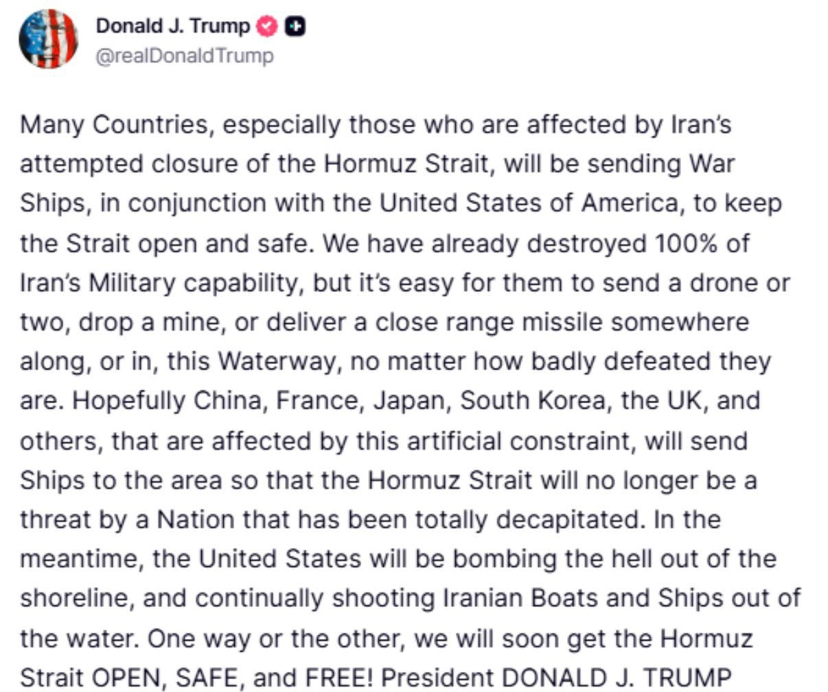 Trump is also building an international coalition to help escort ships and secure the SoH.