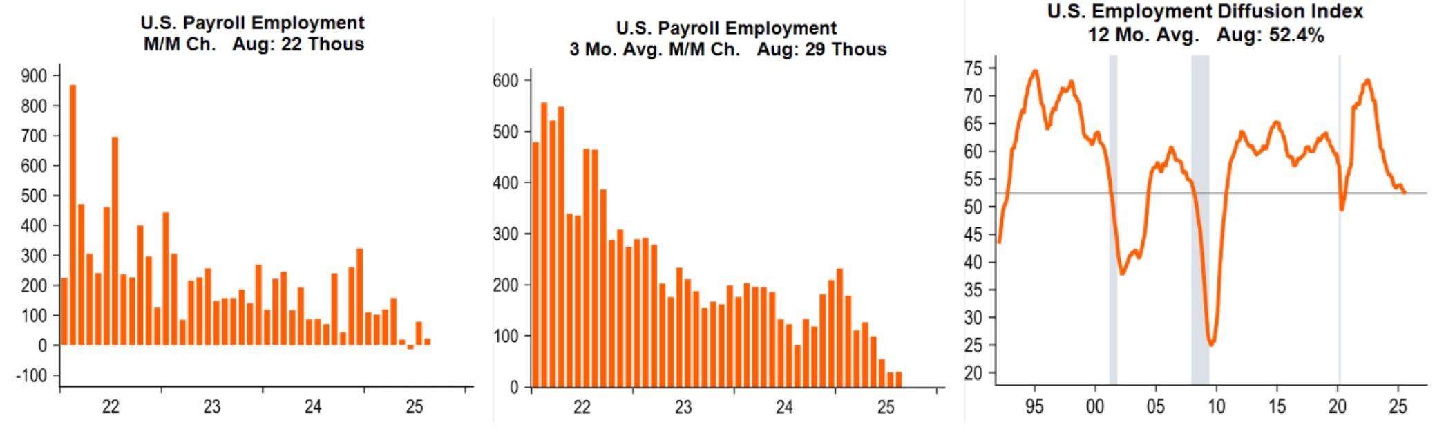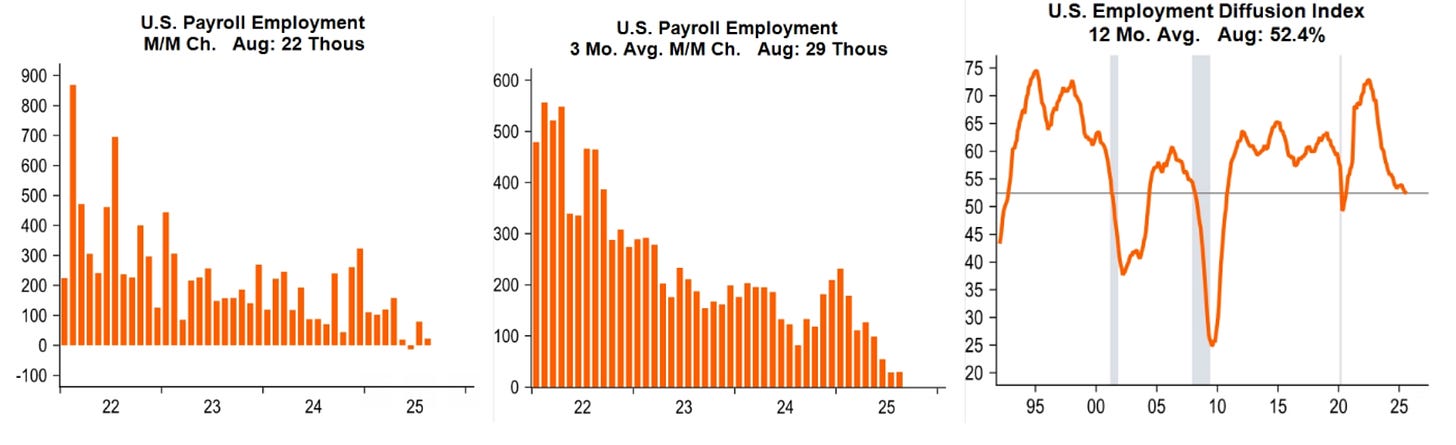 Despite the weak data, equity markets have barely blinked as they are confident that the Fed will respond quickly and forcefully. A decline in the supply of labor due to Trump’s tighter immigration policies also means that less employment growth is required to keep the unemployment rate at a constant level.