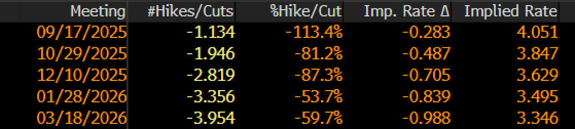 One way I can envision the next month playing out is the following scenario. The market is pricing in three cuts over the next few meetings.