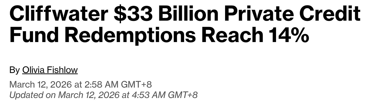 Meanwhile the flood of private credit redemptions continues unabated. It’s a slow motion train wreck that is impacting the availability of credit.