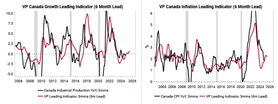When yields top out, they should take USD lower with it. CAD is one of my favorite longs against USD for several reasons. First, I think the tariffs that Trump has threatened against Canada are mostly a negotiating tactic, and that the endpoint will be that the US and Canada negotiate tariffs down to a less impactful level. Second, Trudeau will be stepping down, and the candidate who is expected to replace him (based on Polymarket) is Pierre Poilievre, a business friendly politician who believes in a small government and philosophically aligns well with Trump. Third, the market has already priced in an aggressive cutting cycle for Canada, while economic surprises are inflecting higher (based on the Citi economic surprise index). Variant Perception’s leading indicators for Canada’s growth and inflation are also inflecting higher.