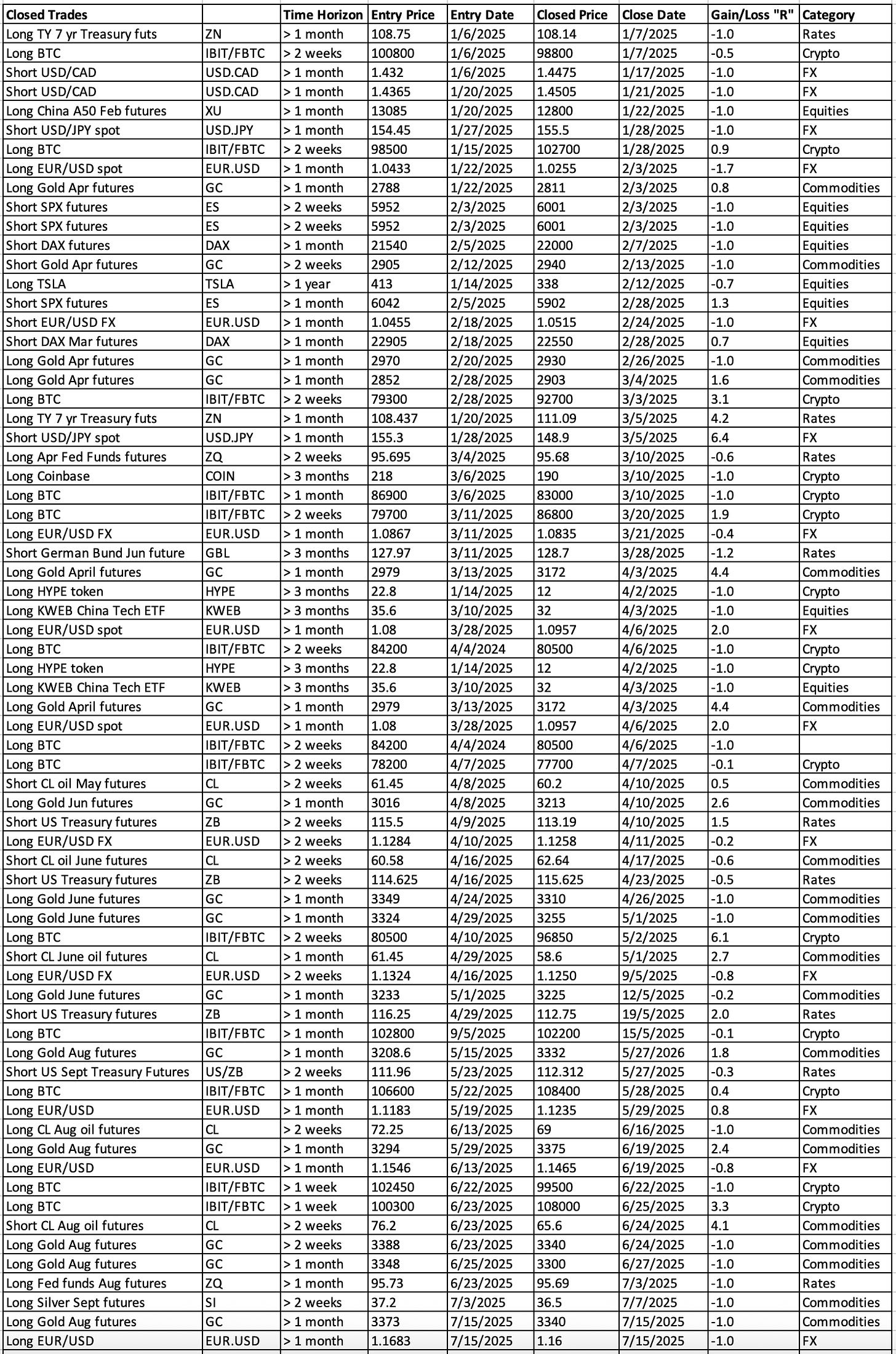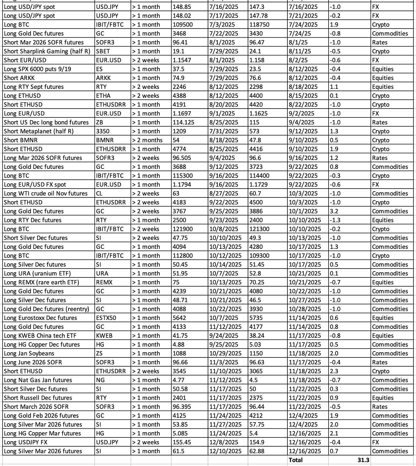 My equity and FX trades lost a combined 7.2 R. I do not feel too bad about FX, given how notoriously difficult that asset class is, but I am leaving a lot of potential gains on the table in equities. I have not yet found a reliable way to express my macro views through equities and ETFs. I often end up out of sync with the market and focused too much on short‑term swings because I lack conviction. I do not yet have a clear answer on how to improve my equity results, so any guidance from readers is welcome.